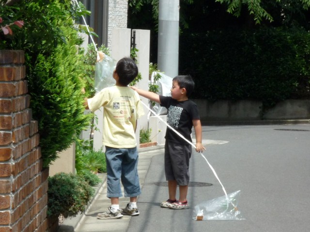 このじゃりんこグループは、買ったおもちゃよりもどーでもいいモノで遊ぶ方が楽しいらしい。