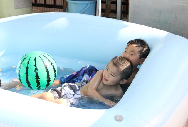 お家プールに入れてもらいましたよ♪