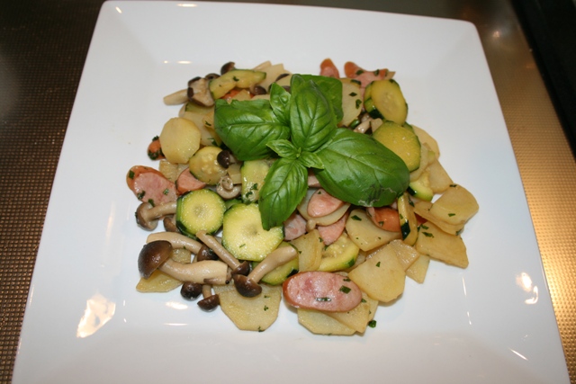 『ズッキーニとジャガイモのオリーブオイル炒め』⇒