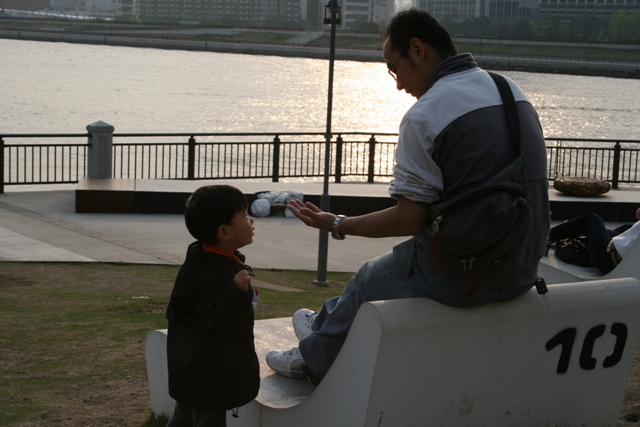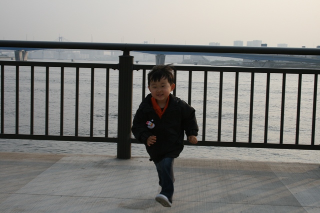 船を見たり小石を拾ったり、そして走り回り、と。