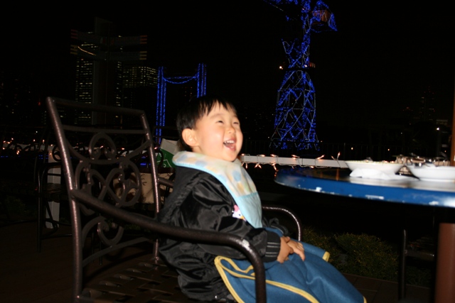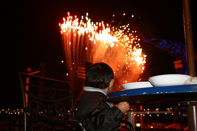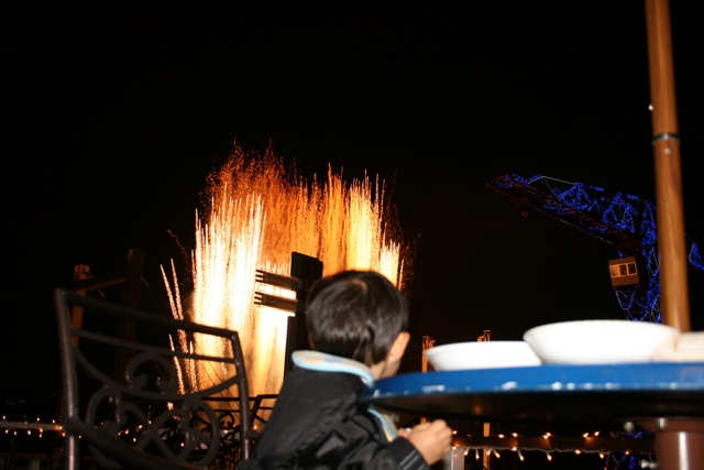 この日、ららぽーと豊洲では333発の花火を打ち上げるとの事だったので、レストランのテラス席を陣取り食事をしながらの花火見物をしよう!!