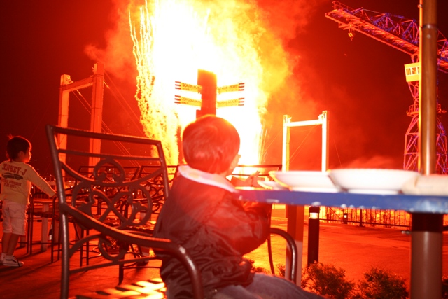 花火を楽しみながら、家族水入らずでのテラスの食事。