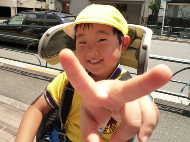 お天気ド快晴、汗だくになりながらチャリで幼稚園へ。