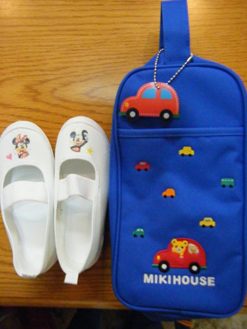 『ミッキーの上履き履いて、ママとぴよちゃん(ぴよちゃん幼児教室の事です)、行くだよ♪