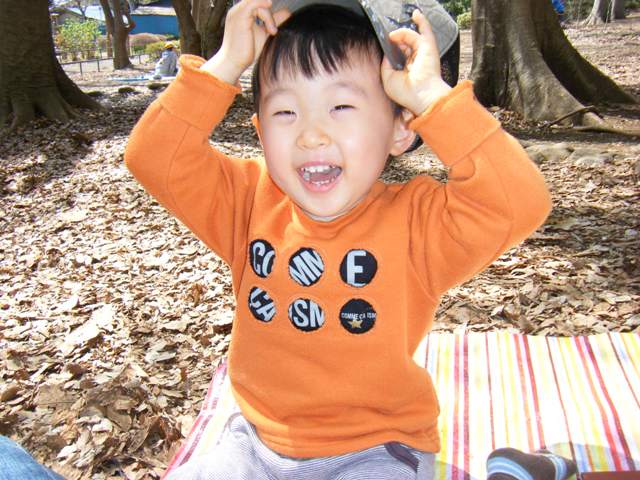 この前、ママと2人でお花見に来た時にお友達がやっていて、「ボクも『しゃぼんぼん』やりたいよ~!!」とベソかいてたので…。