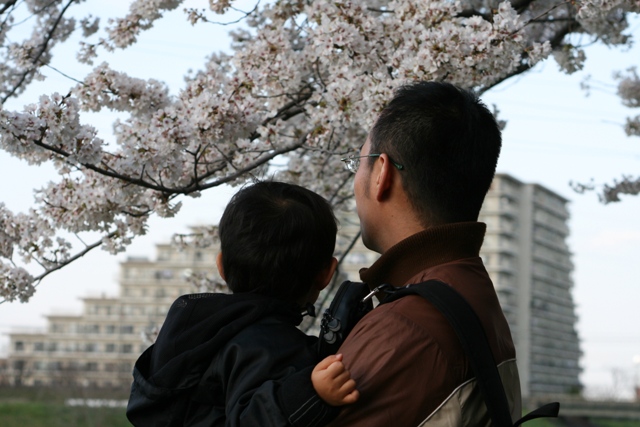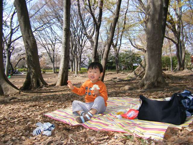 『ママ、おにぎり美味しいね♪ 桜、あっちも!! こっちも!! たくさん咲いてるね!!』