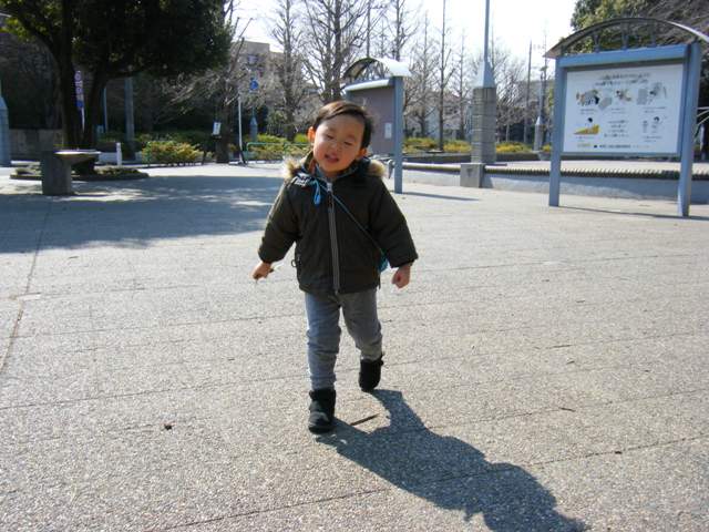 この日は風が強くて寒かったので、じいじに遊び場へ連れてきてもらいました♪