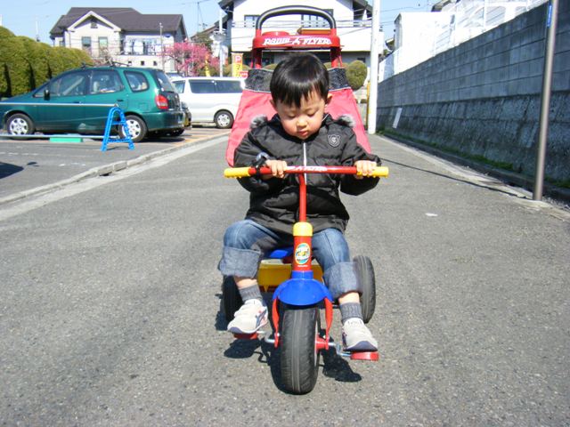 随分前に葵に三輪車を買っていたのですが、乗る事になかなか興味を示すことがなく・・・。