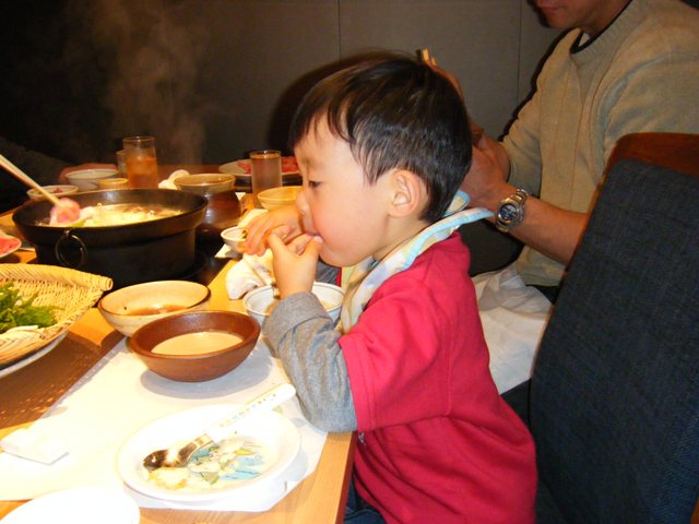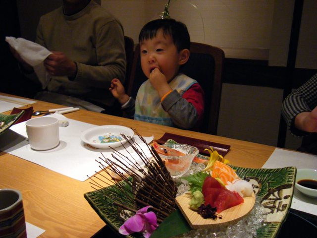 その後も色々な物に手を出し、よく食べてくれました。。。(もう大人の物みんな食べれると思って、あえてお子様御膳は取らなかったのです)