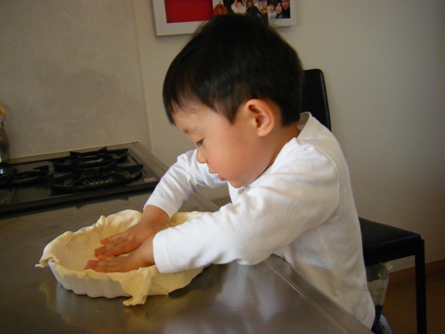 のってきました、我が息子♪ 頑張って生地を伸ばしております~p(*^-^*)q