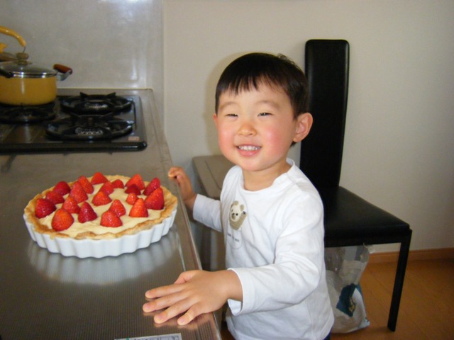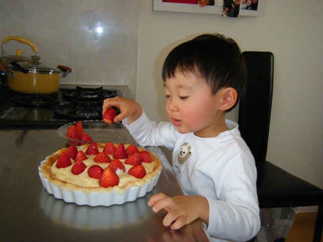 『好きなようにいちごを乗っけてね♪』の言葉に、とても楽しそうに『次は~、ここに♪』なんて言いながら自分でやっておりました。