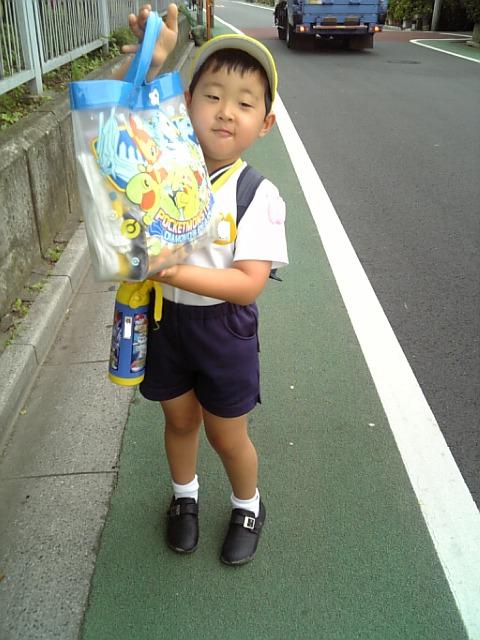 幼稚園バスを降りたプール帰りのあおいを捕まえ、