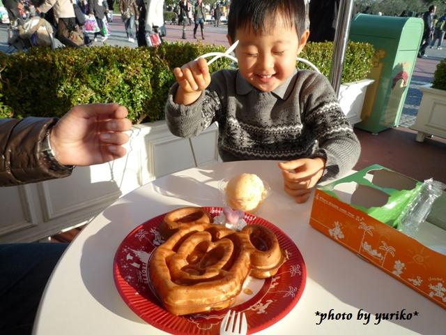 ピザ食べたりチュロス食べたり、たまにはこうやって座ってワッフル食べたり。