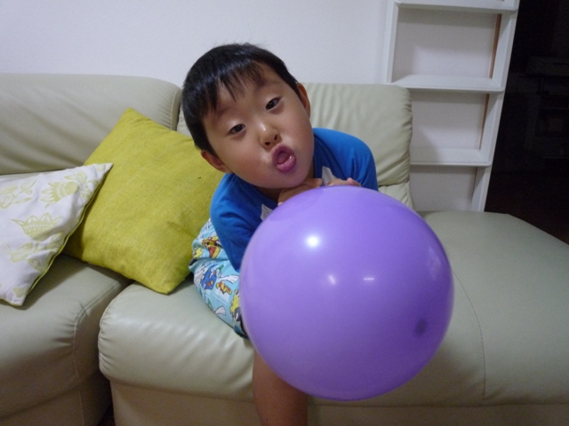 お向かいのお兄ちゃんと風船を膨らましてはピュ~!!と風船を飛ばす遊びをやっていて、自分でも出来るようになったよう。