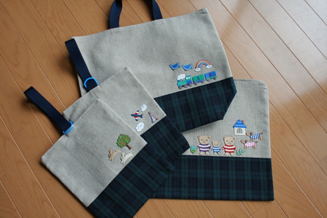 で、これは(左から)『上履き入れ』・『外履き入れ』・『上履き&外履き入れ&スモックを入れるバッグ』