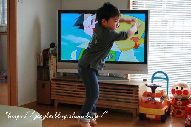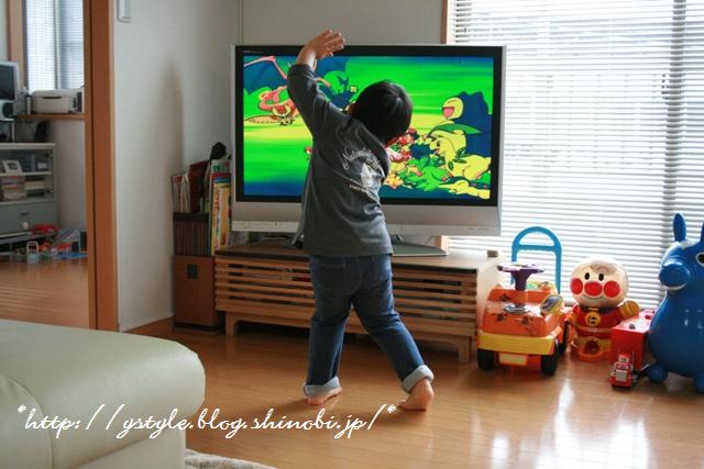 TVで『ポケットモンスター』の歌を聴きながら、ノリノリです。