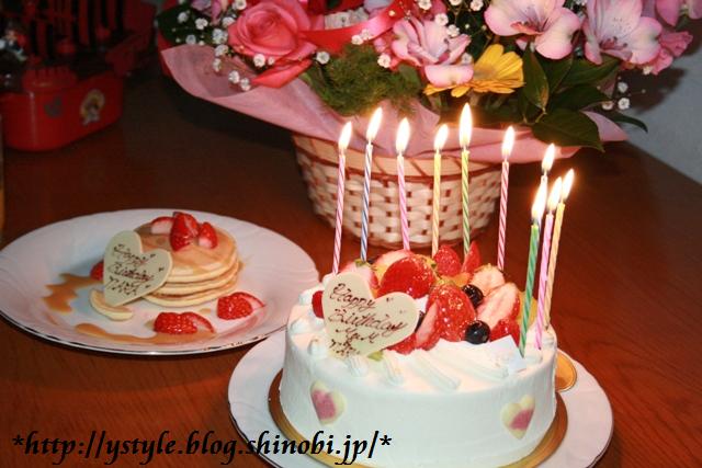 左はティアラのバースデーパンケーキ。 右は私のバースデーケーキ。