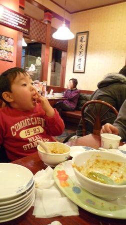 そしていつもの事ながら、休みの日はおじいちゃん達と一緒に晩御飯を食べに行った我が家でありました。