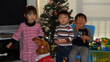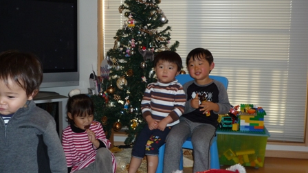 この日はパパの会社のいつものピクニック仲間家族を招いて、クリスマス会を開催♪