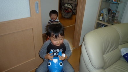 ああ、そう言えばその後、おもちゃのボウリングのボールを投げ、ピンに当たり跳ね返ってきたボールがあおいの鼻に直撃してまた泣いてたわ~。
