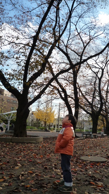 公園の桜の樹の葉っぱも殆ど落ちちゃって。