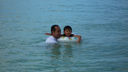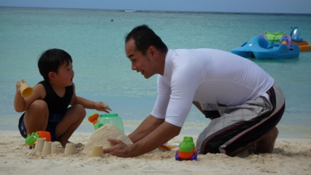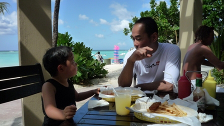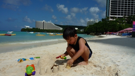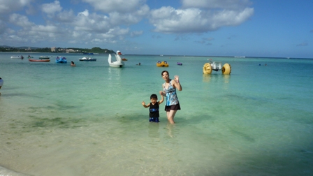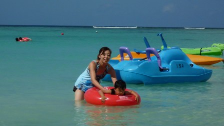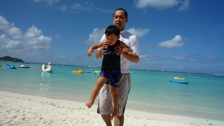 我が家はホテル前のタモンビーチでAM9時頃から海水浴でありました。