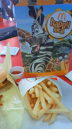 お昼はマックにて。 あおいのハッピーミールにはかたつむりのおもちゃが付いてきました。