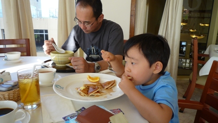 この日の朝食はホテルのビュッフェでとり、おじいちゃんとおばあちゃんは島内観光へ。