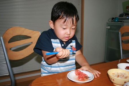 御覧の通り、トマトもお箸でつかめるようになりました。