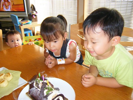 Yちゃんママがあおいのバースデーにとケーキを買って来てくれ。
