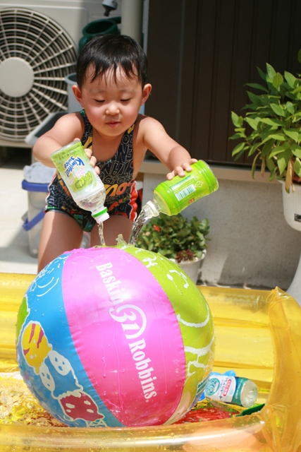 水鉄砲で「ぼく、オシッコ退治するんだ♪」と、散々プールの水をばらまいておりました。