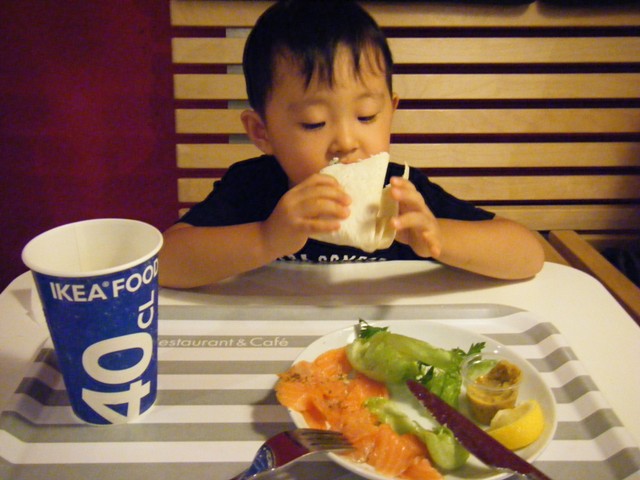『お腹すいちゃったよ~!!』の一言で ↑ 。 なんでおやつにスモークサーモン・・・。