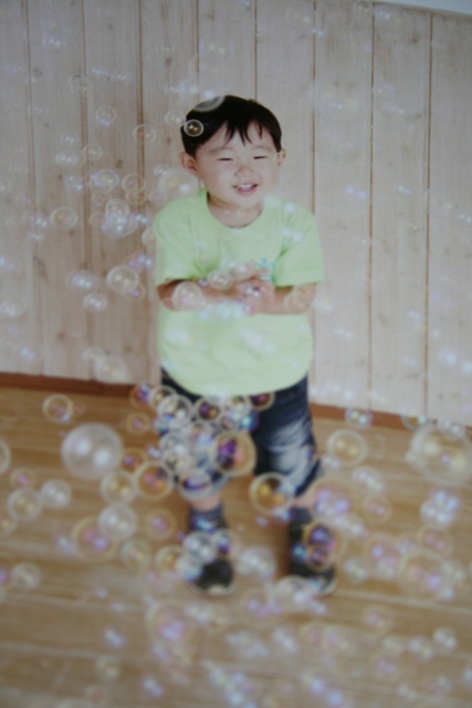 『ママ、これお水かけると面白いよ♪ 見て見て!!』