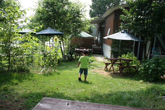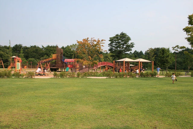 遊具の周りをぶらぶらお散歩&長時間の車で疲れた事もあって、涼しい風に身をまかせながらキャーキャー言ってるあおいを見物。
