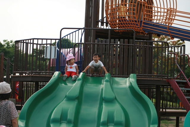 私もやってみました、ローラー滑り台。 (面白かった♪)