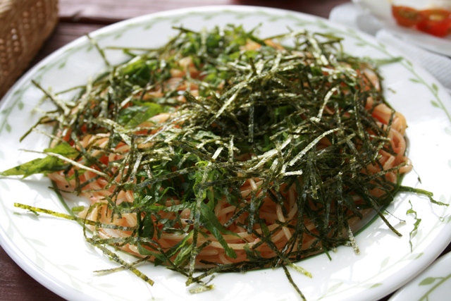 そして、あおいが大好きなたらこスパ(大葉と海苔がいっぱいだあ!!)に、パリパリピッツアを。