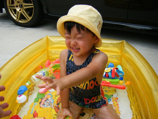 さすがに家の前で私が水着着て、幼児用プールに入るって訳にはいかないでしょー(笑)