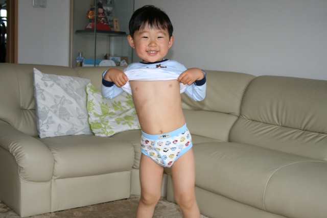 男の子だって、毎日可愛い絵柄のパンツを穿く事でオムツ外しに良い影響があるんじゃないかと思うんだけど。(あおいがそうだから。)