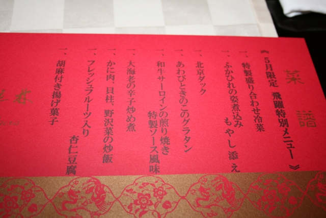 で、一度は行ってみたいと思ったここオークラの『桃花林』の中華料理をお願いしたのでありました。