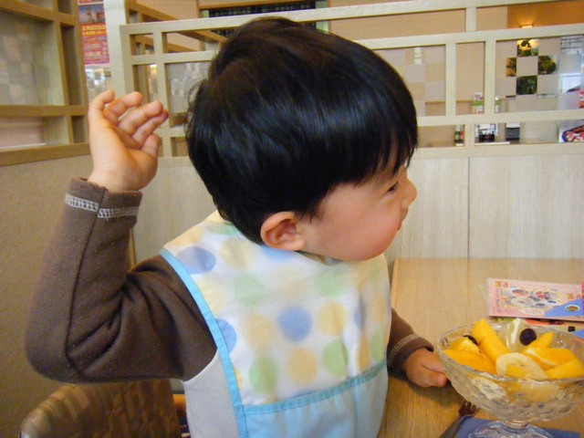 デザートにフルーツを注文して、『美味しい?』と聞くとこの↑ポーズ。