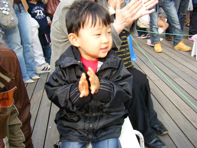 宴会終了後には、あおいは酔っぱらいオジちゃま達に抱っこされ、そしてお別れの『ハイタ~ッチ♪』を皆とし、としまえん遊園地を後にしました。