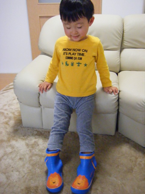 先日、ミッキーの傘もばあばに買ってもらったので、これでレインコート&傘&長靴とバッチリ♪