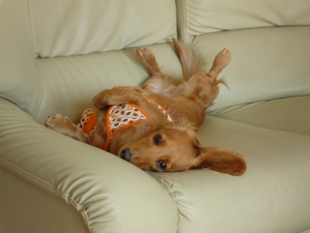 こんな格好でウーウー言い尻尾振りながら、「触れ!! 触れ!!」のアピール。
