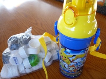 午前保育の時はジュースが出るみたいだから要らないかも知れないけど・・・、やっぱり気になったので、ついでだからと協力して貯めておいたペットボトルキャップも一緒に幼稚園へ届けてきました。