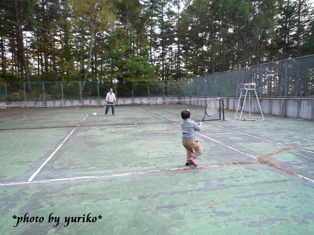 お部屋で少し休んでから、ラケットを借りてテニスコートへいきましたよ。
