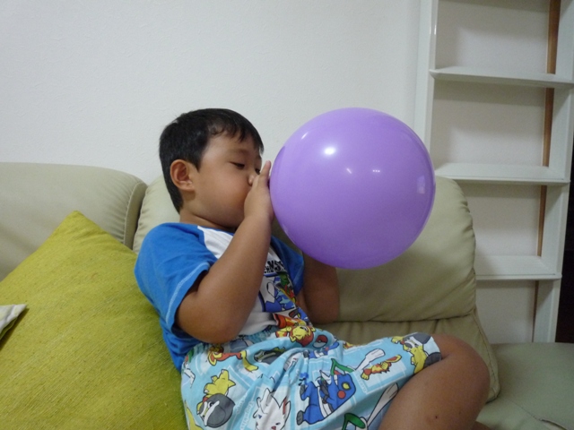 お向かいのお兄ちゃんと風船を膨らましてはピュ~!!と風船を飛ばす遊びをやっていて、自分でも出来るようになったよう。