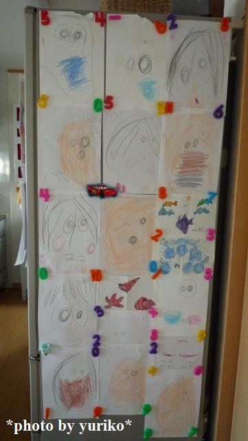 人の顔を描いてはここに『飾って飾って♪』言うもんだから、冷蔵庫がこんなんなっちゃった。