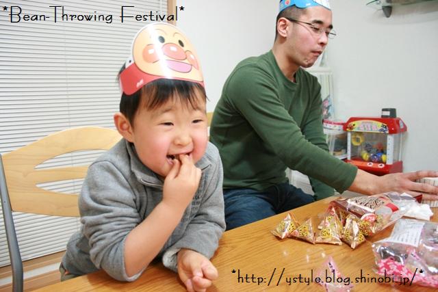 なのであおいは本物の豆はおじいちゃんの所で3個食べ、2階での豆まき&豆食べは・・・、
