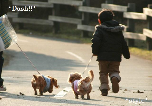 午後は少し暖かかったので、Mocha&Tiaraとお散歩へ。