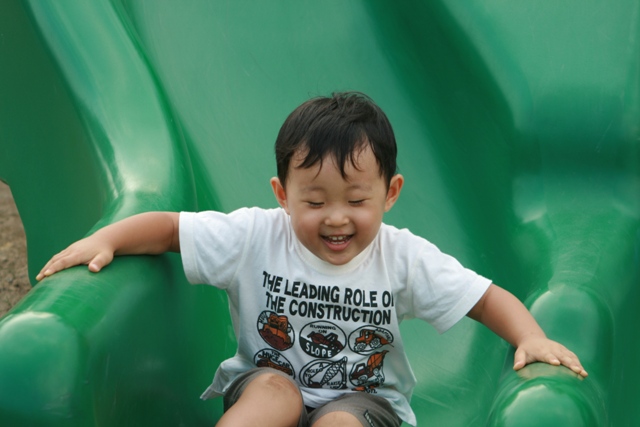 遊具の周りをぶらぶらお散歩&長時間の車で疲れた事もあって、涼しい風に身をまかせながらキャーキャー言ってるあおいを見物。